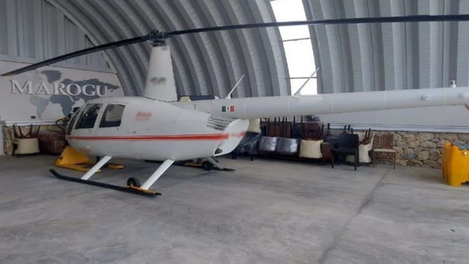 De acuerdo con un breve comunicado, en el inmueble se encontraron un arma larga, seis armas cortas, 210 cartuchos, un helicóptero, cuatro vehículos, dos de ellos todo terreno, además de una retroexcavadora, un remolque y una motocicleta.