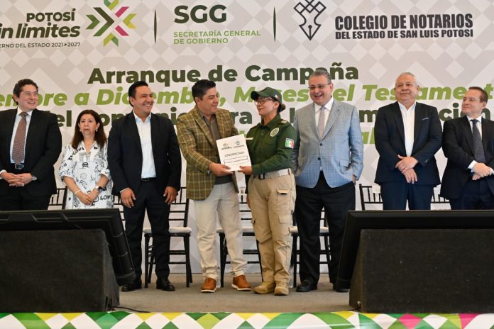 Para brindar mayor certeza jurídica a las y los potosino, el Gobernador de San Luis Potosí, Ricardo Gallardo Cardona, encabezó el arranque de la campaña “Septiembre a diciembre meses del testamento”, así como la firma de convenio para la implementación del sello digital notarial, con el que se garantiza a la ciudadanía que todos sus trámites ante el notario se realicen conforme a derecho, con voluntad de las partes involucradas y con efectos legales justificados.