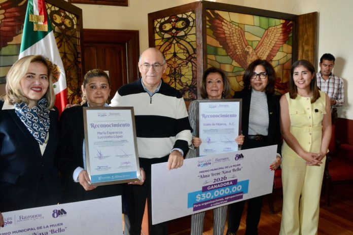 Debido a su contribución al desarrollo de las mujeres, así como por sus acciones sociales y de empoderamiento, el Cabildo en pleno de San Luis Potosí otorgó el Premio Municipal de la Mujer “Alma Irene Nava Bello” 2026, a María Esperanza Lucciotto López y a la asociación “Vuelo de Pajaros”.