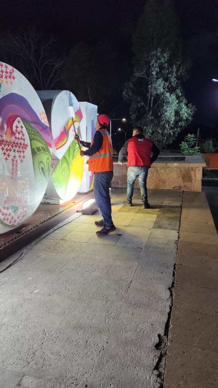 Además del nuevo diseño, en la zona se llevaron a cabo trabajos de limpieza e hidrolavado, con el objetivo de mantener en óptimas condiciones este espacio público que es referente y punto de encuentro para las familias potosinas.