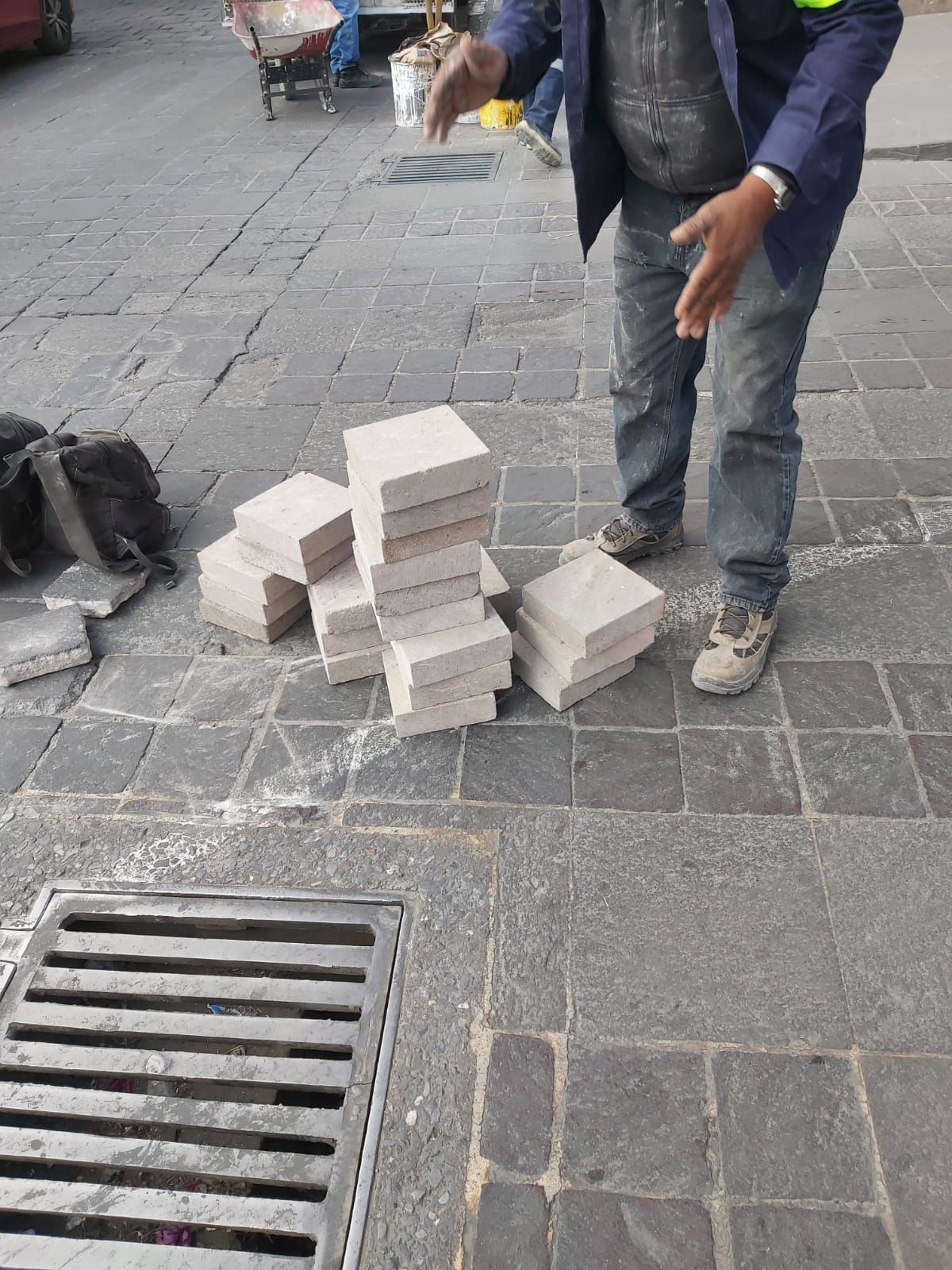 Igualmente, a unos días de que se celebre el tradicional evento, trabajadores de la UGCH fijan las piezas de adoquín que se han aflojado por el tráfico vehicular, como en las calles de Madero y Reforma.