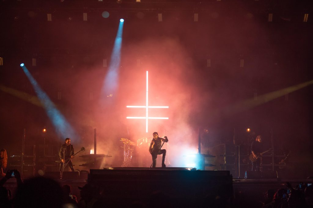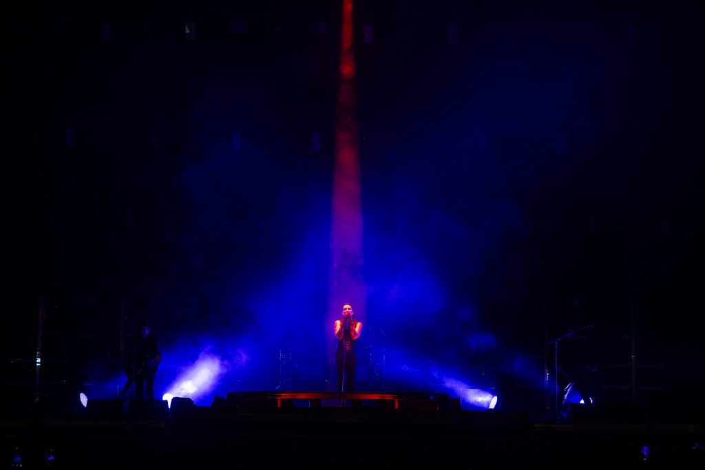 El espectáculo inició puntual a las 21:00 horas, con una aparición llena de luces rojas y humo que encendió el ánimo del público hasta llegar al clímax de la noche.