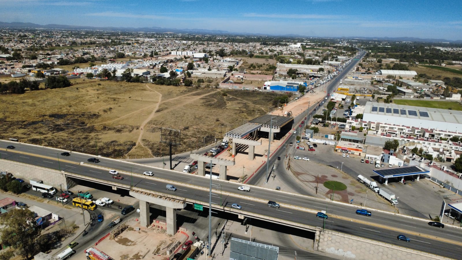 El Gobierno del Estado, a través de la Secretaría de Desarrollo Urbano Vivienda y Obras Públicas (Seduvop), avanza en la construcción del mega puente en Circuito Potosí en su cruce con Bulevar Valle de los Fantasmas, con un 55 por ciento del total de la obra, demostrando el cambio que se vive en la entidad, con obras que contribuyen a una movilidad sin límites.