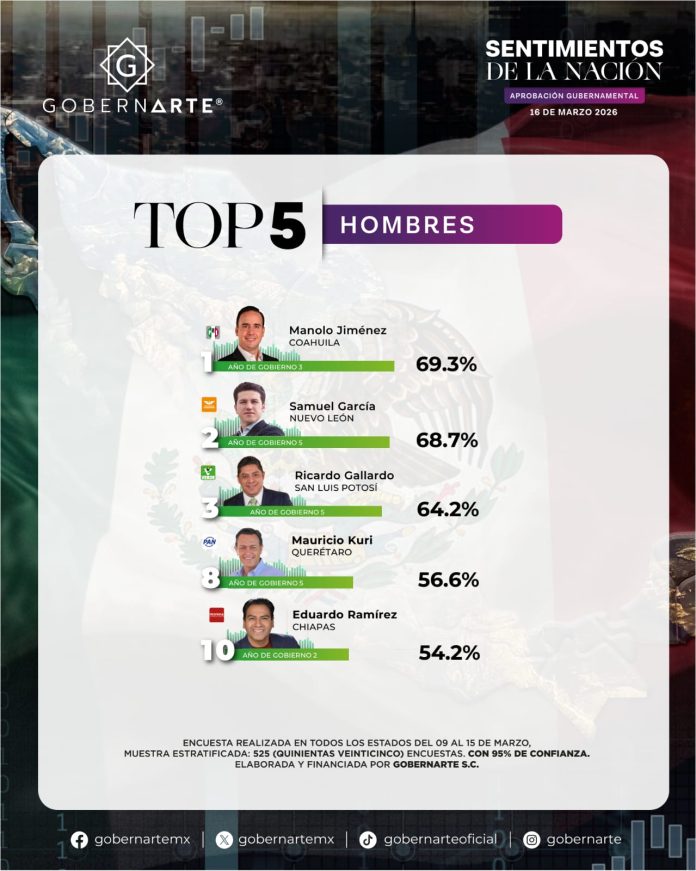 El análisis también lo posiciona como el perfil de la Cuarta Transformación con mayor nivel de aprobación, superando a gobernantes de entidades como Ciudad de México, Guerrero, Estado de México y Chiapas, además de colocarlo como el tercer hombre mejor evaluado a nivel nacional dentro del ejercicio comparativo.